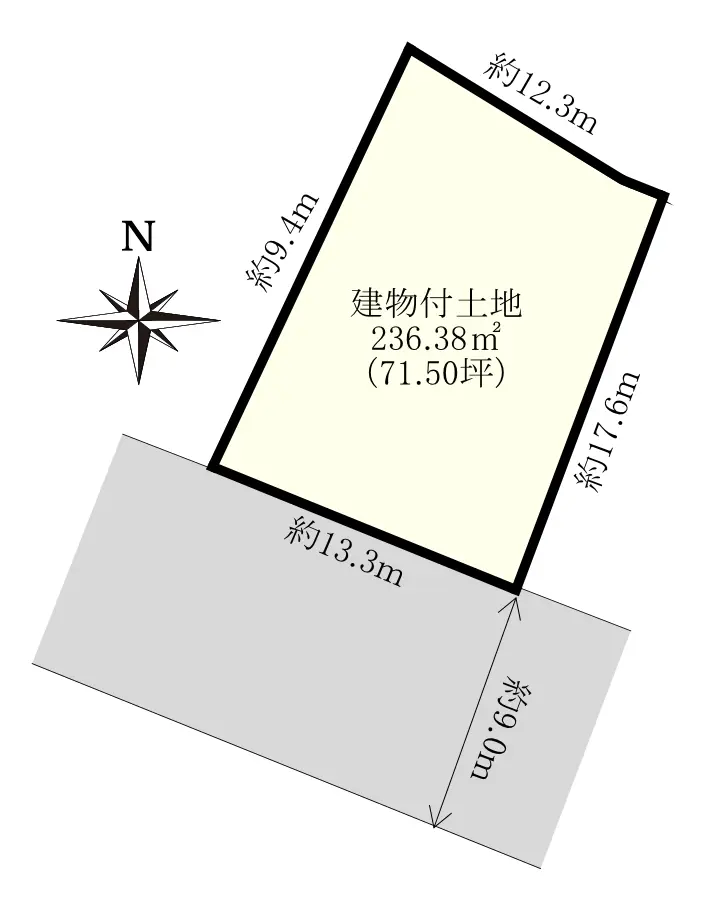 | 接道状況 | 一方道路・南西9m(公道)接面13.3m |