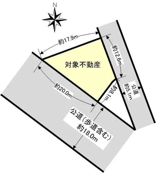 | 接道状況 | 二方道路・南西18m(公道)接面20m/北東5.1m(公道)接面12.6m |