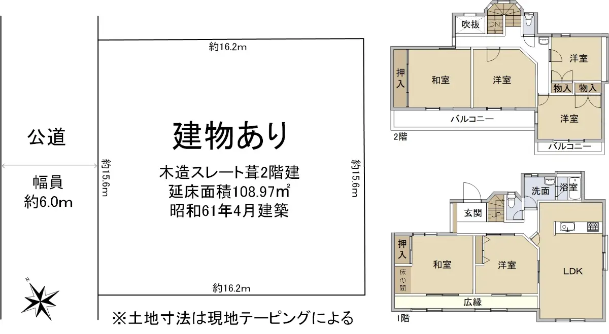 | 接道状況 | 一方道路・北西6m(公道)接面15.6m |