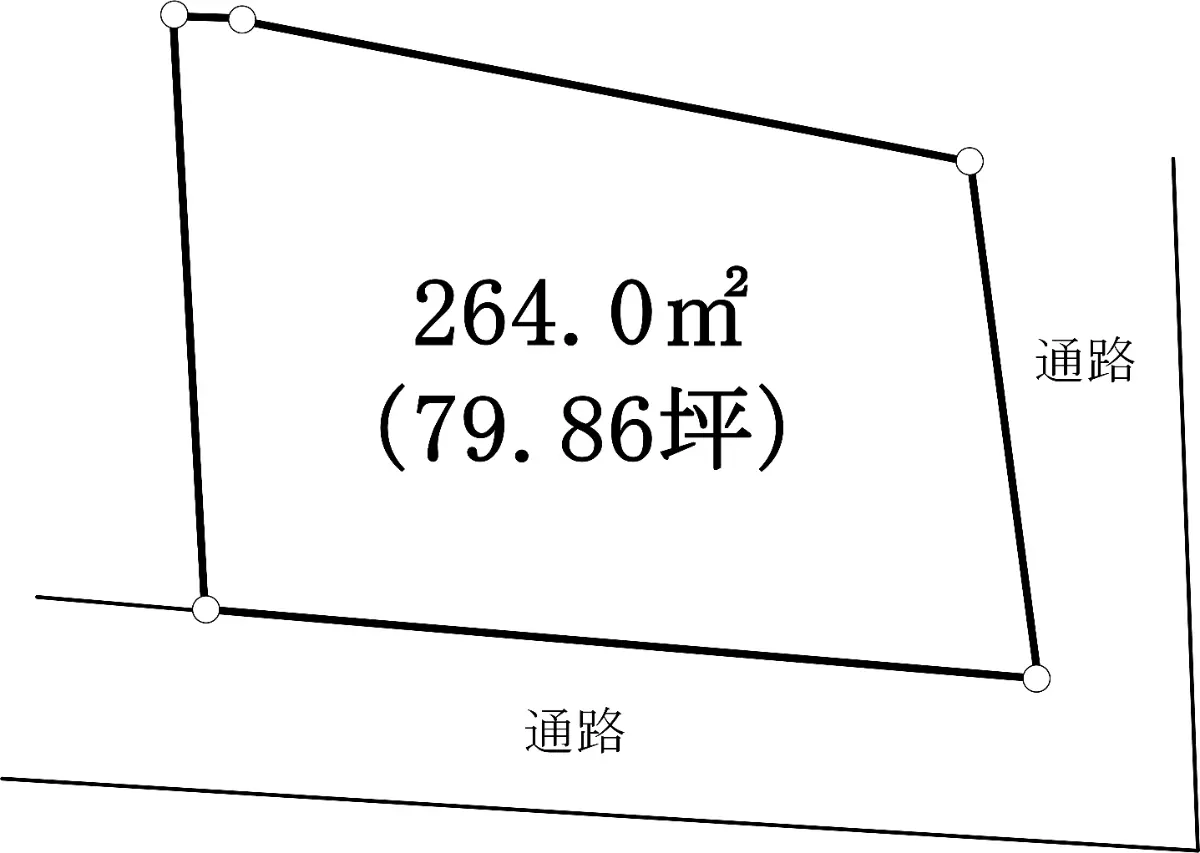 | 土地面積 | 264.00m2(約79.86坪)※公簿/他に私道負担:36.50m2あり |