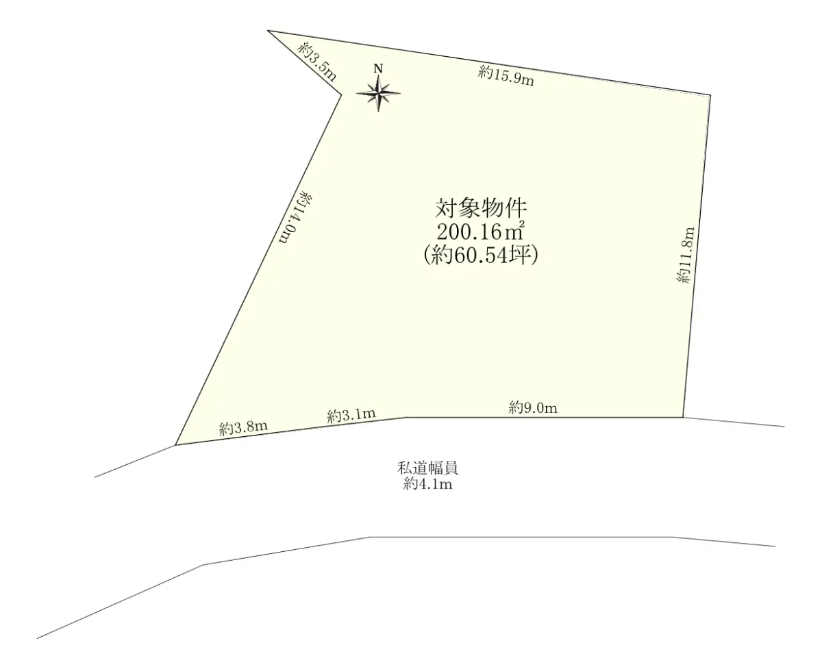 | 接道状況 | 一方道路・南4.1m(私道)接面15.9m |