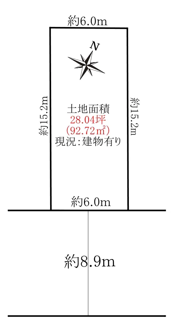 | 接道状況 | 一方道路・南東8.9m(公道)接面6m |