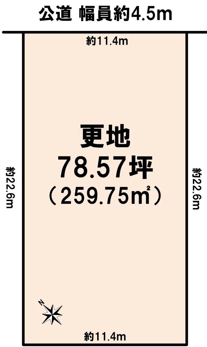 | 接道状況 | 一方道路・北東4.5m(公道)接面11.4m |