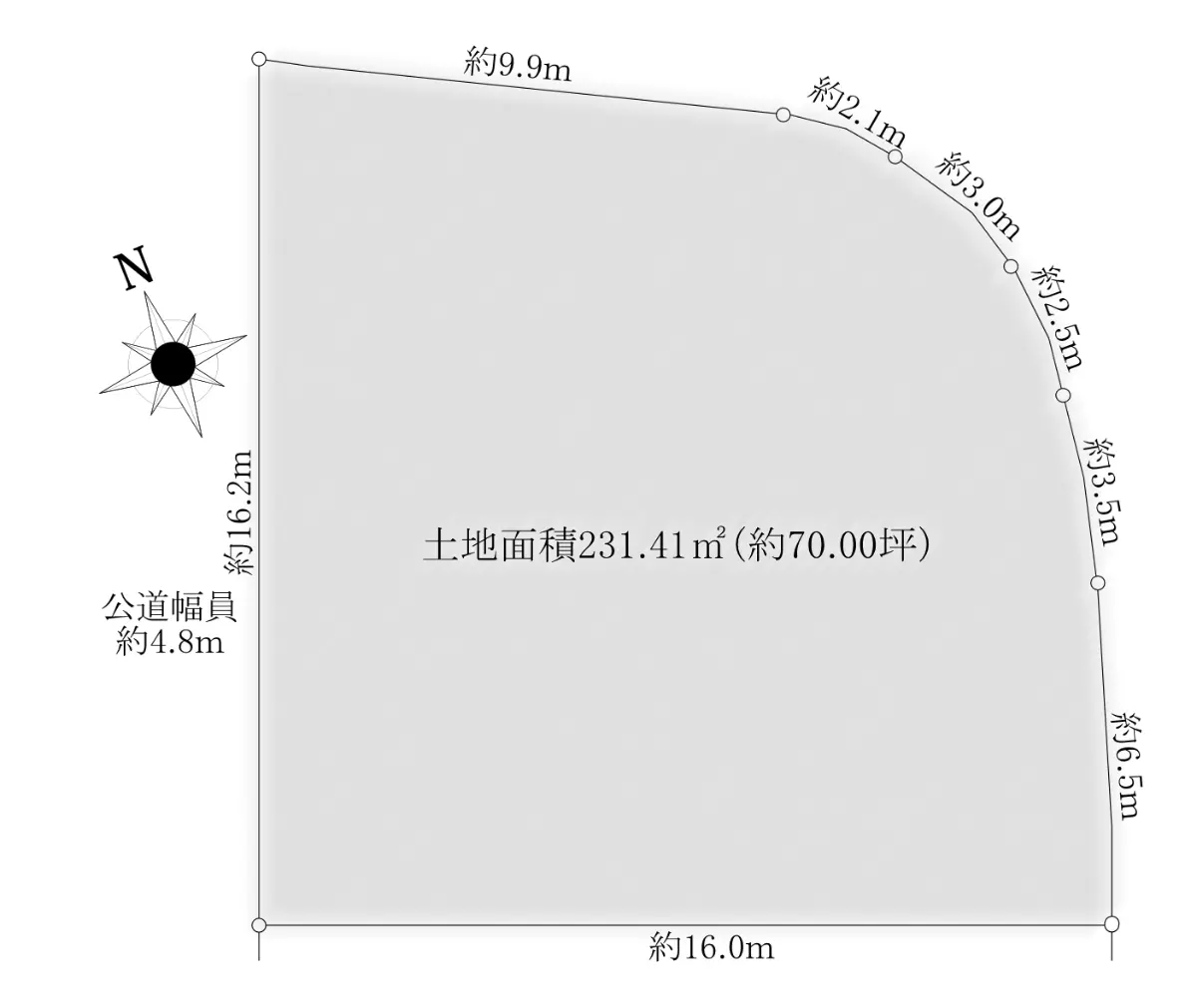 | 土地面積 | 231.41m2(約70.00坪)※公簿 |