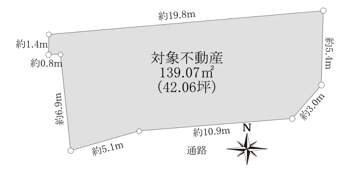 | 接道状況 | 一方道路・東7.8m(公道)接面5.4m |