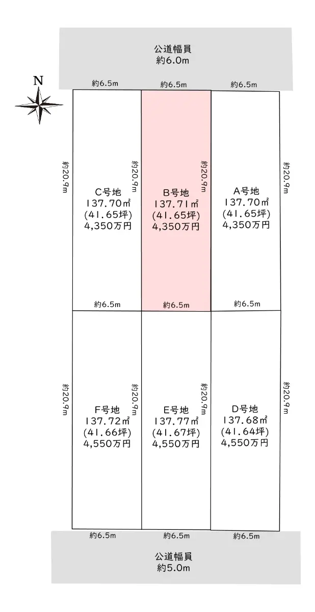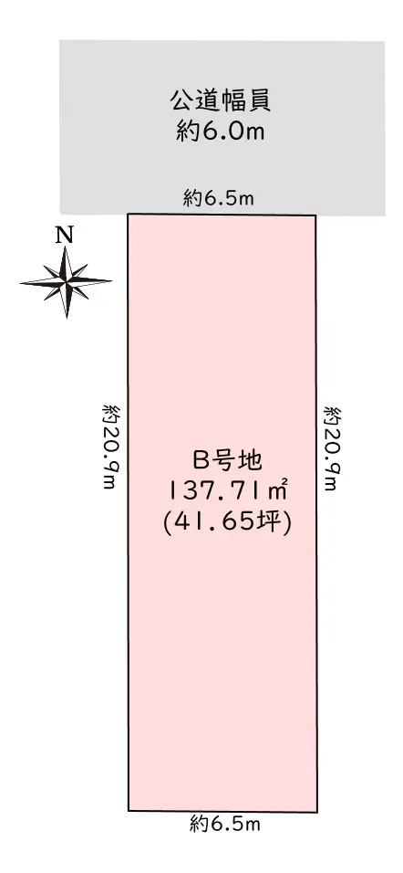 | 接道状況 | 一方道路・北6m(公道)接面6.5m |