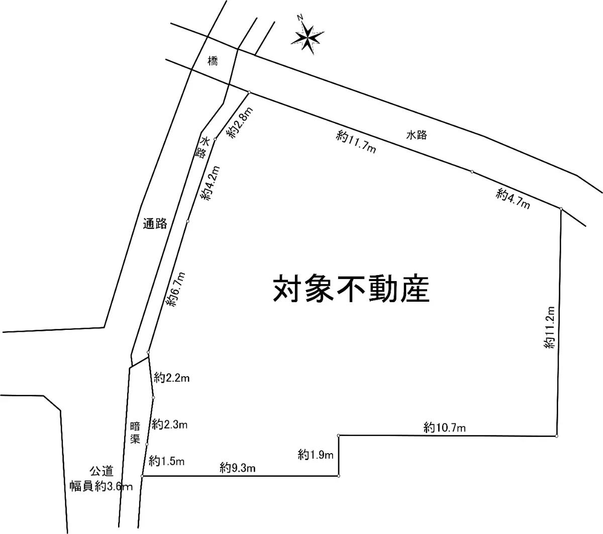 | 接道状況 | 一方道路・西3.6m(公道)接面5.8m |
