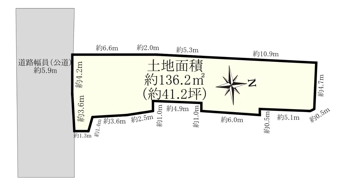 | 接道状況 | 一方道路・南5.9m(公道)接面7.8m |