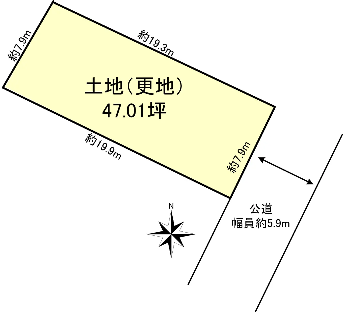 | 接道状況 | 一方道路・南東5.9m(公道)接面7.9m |