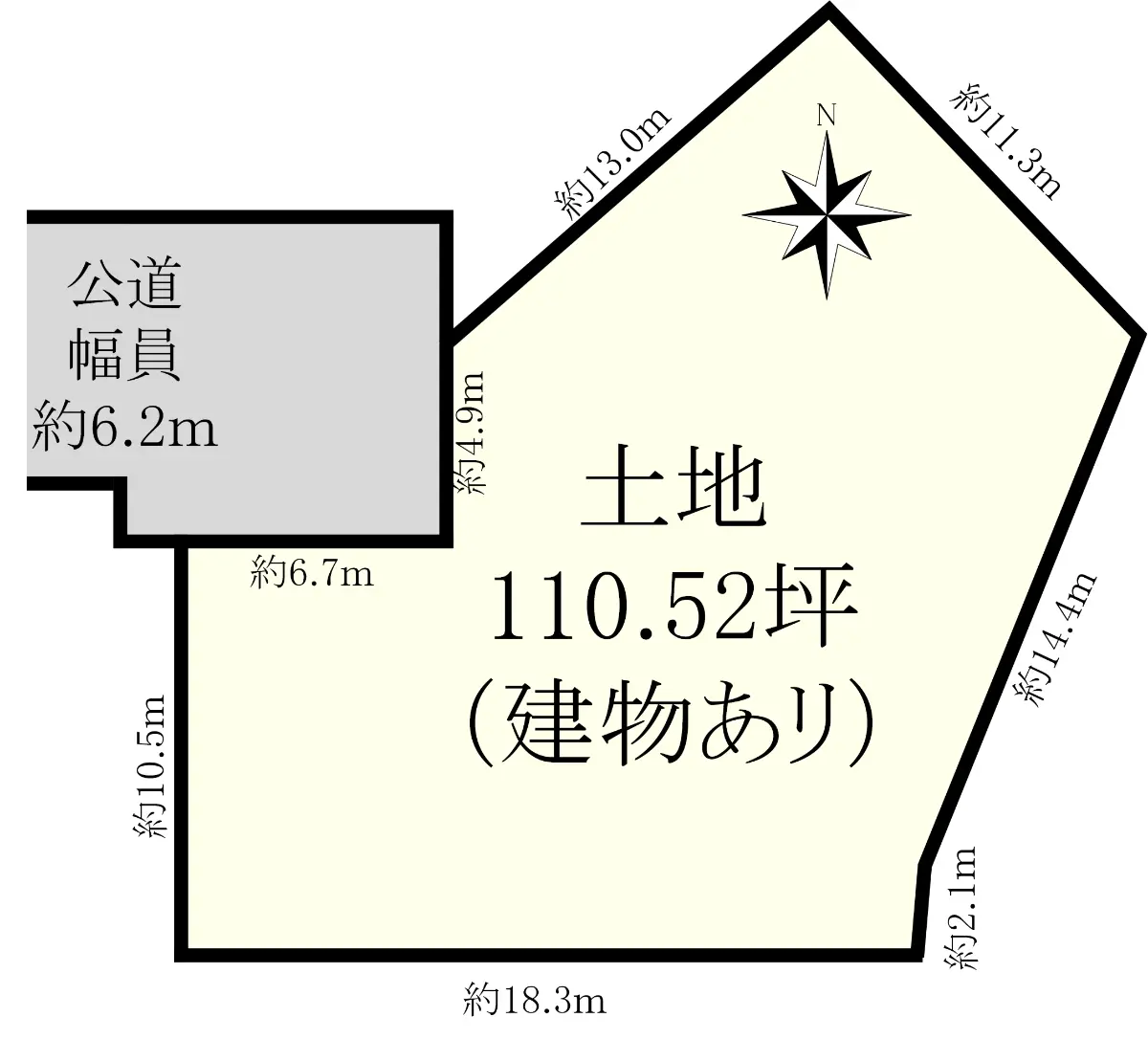 | 接道状況 | 一方道路・西6.2m(公道)接面11.6m |
