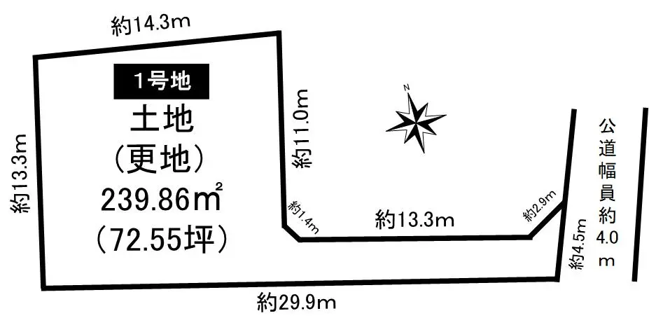 | 接道状況 | 一方道路・東4m(公道)接面4.5m |