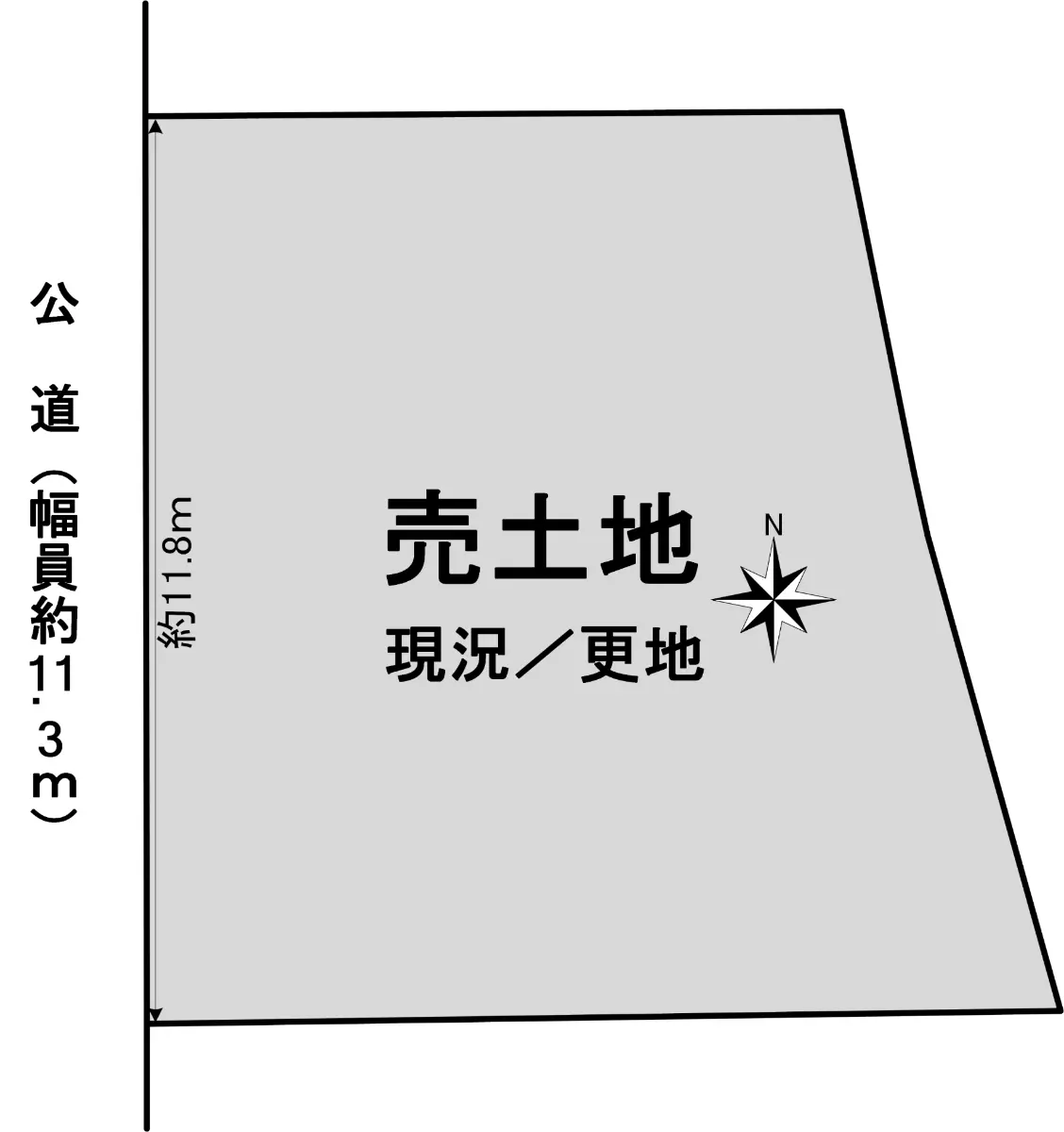 | 接道状況 | 一方道路・西11.3m(公道)接面11.8m |