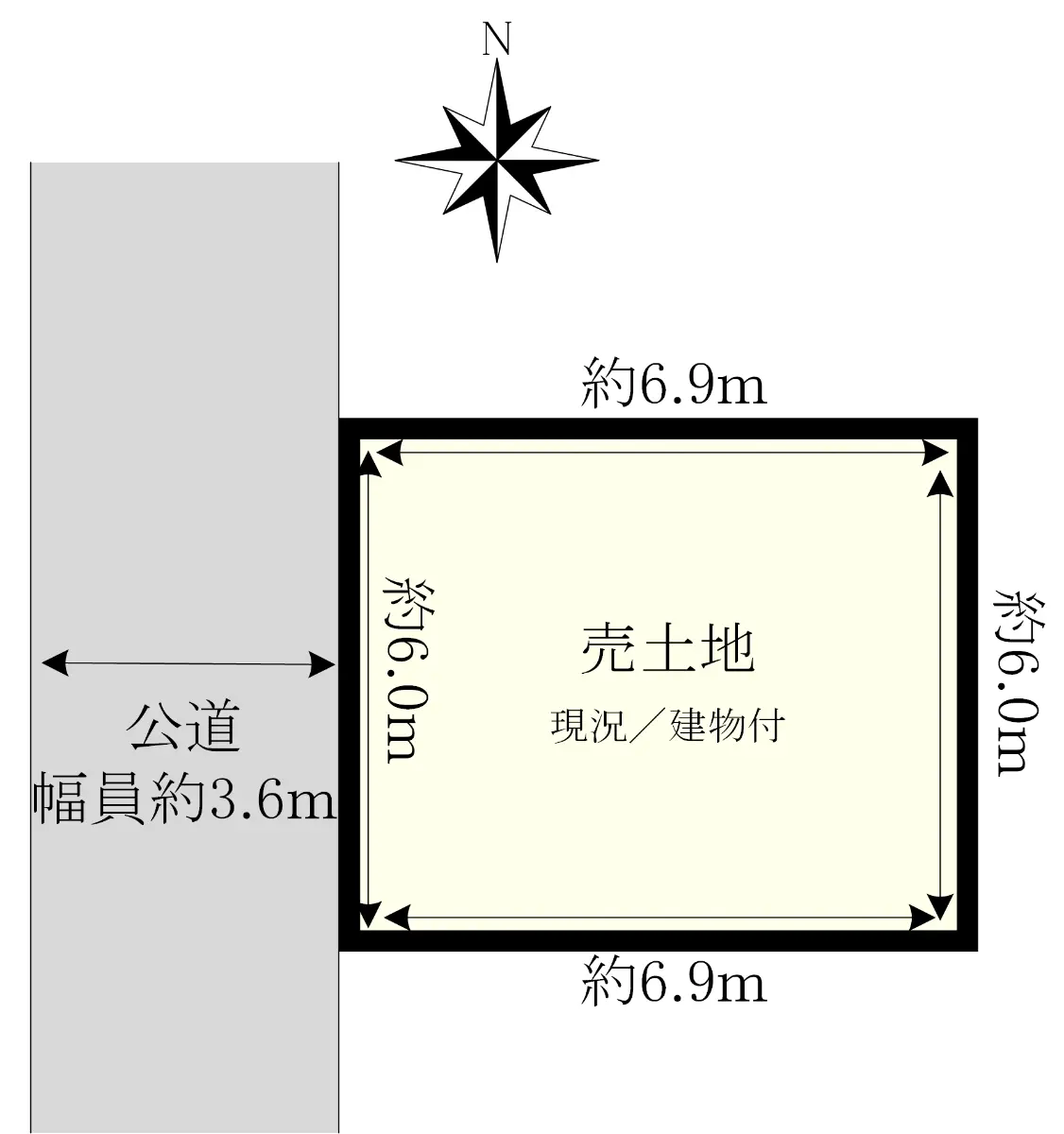 | 接道状況 | 一方道路・西3.6m(公道)接面6m |