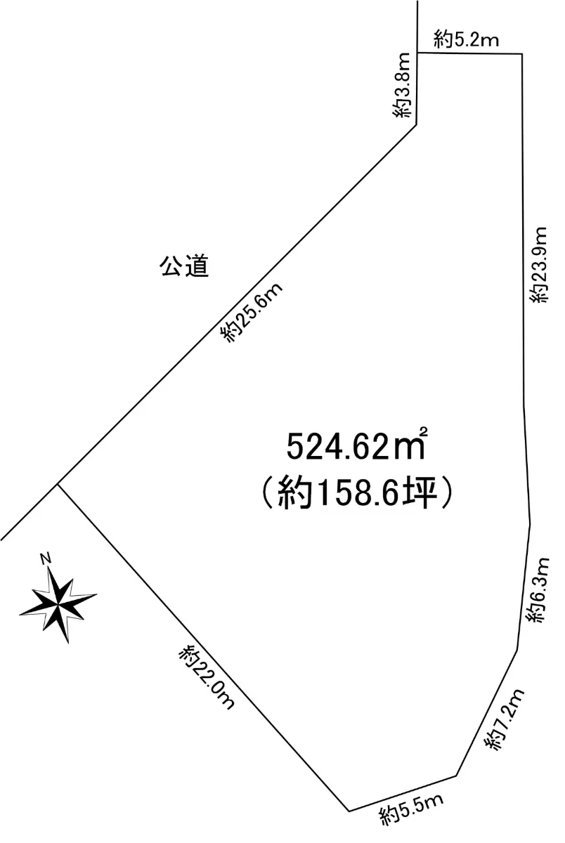 土地面積は524.62u(約158.6坪)ございます。
