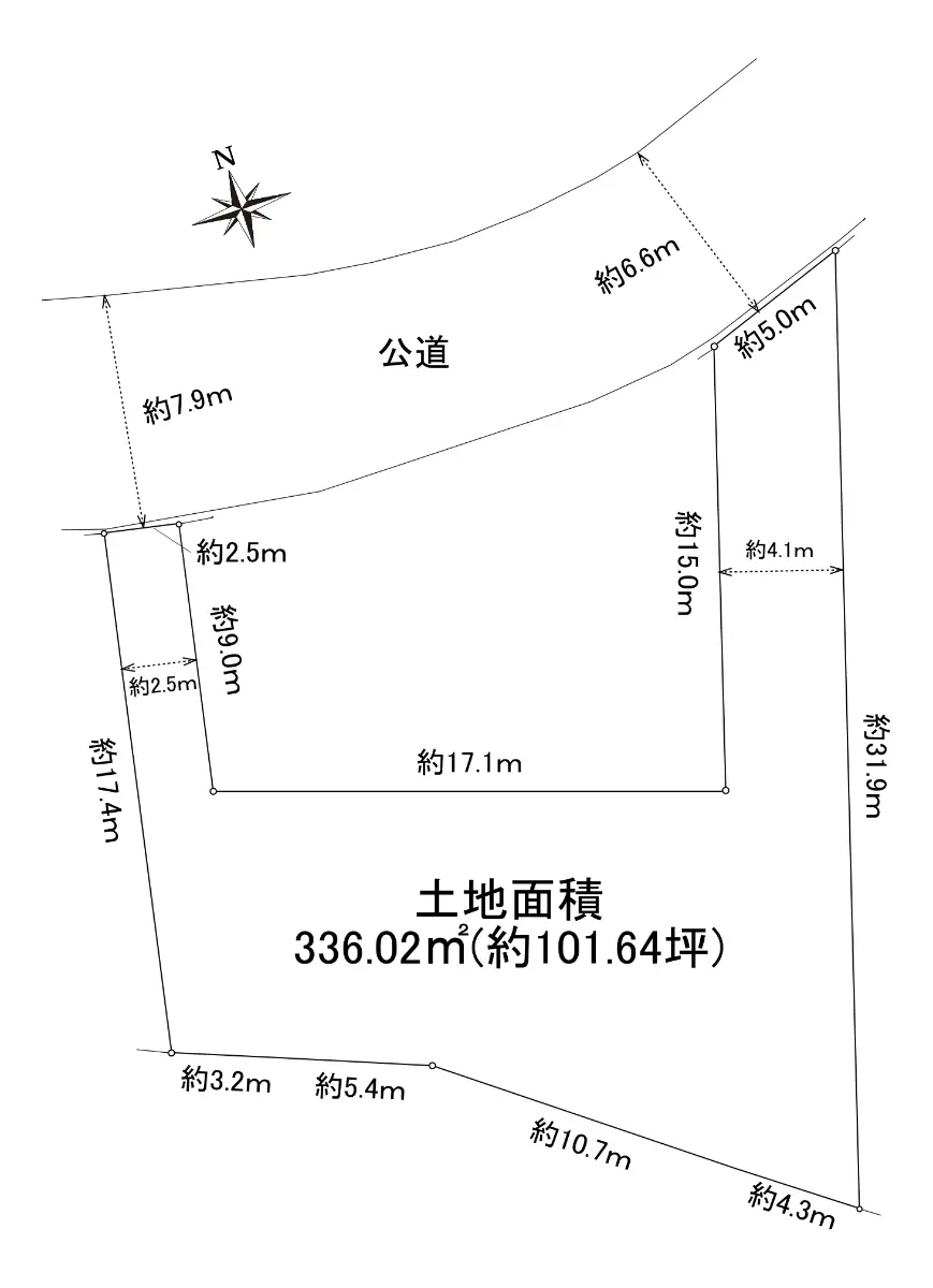 | 土地面積 | 336.02m2(約101.64坪)/路地状部分:92.23m2含む |