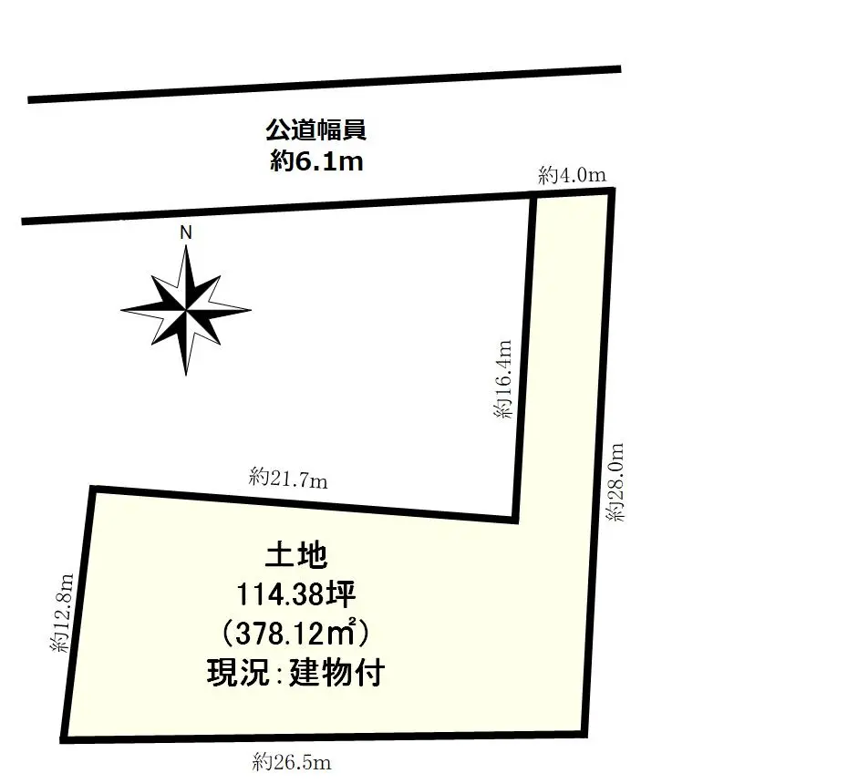 | 土地面積 | 378.12m2(約114.38坪)/路地状部分:66.30m2含む |