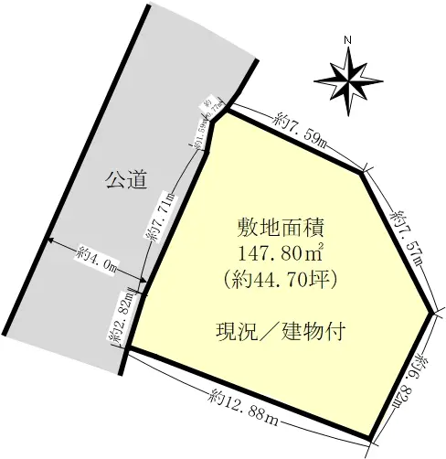| 接道状況 | 一方道路・北西4m(公道)接面12.8m |