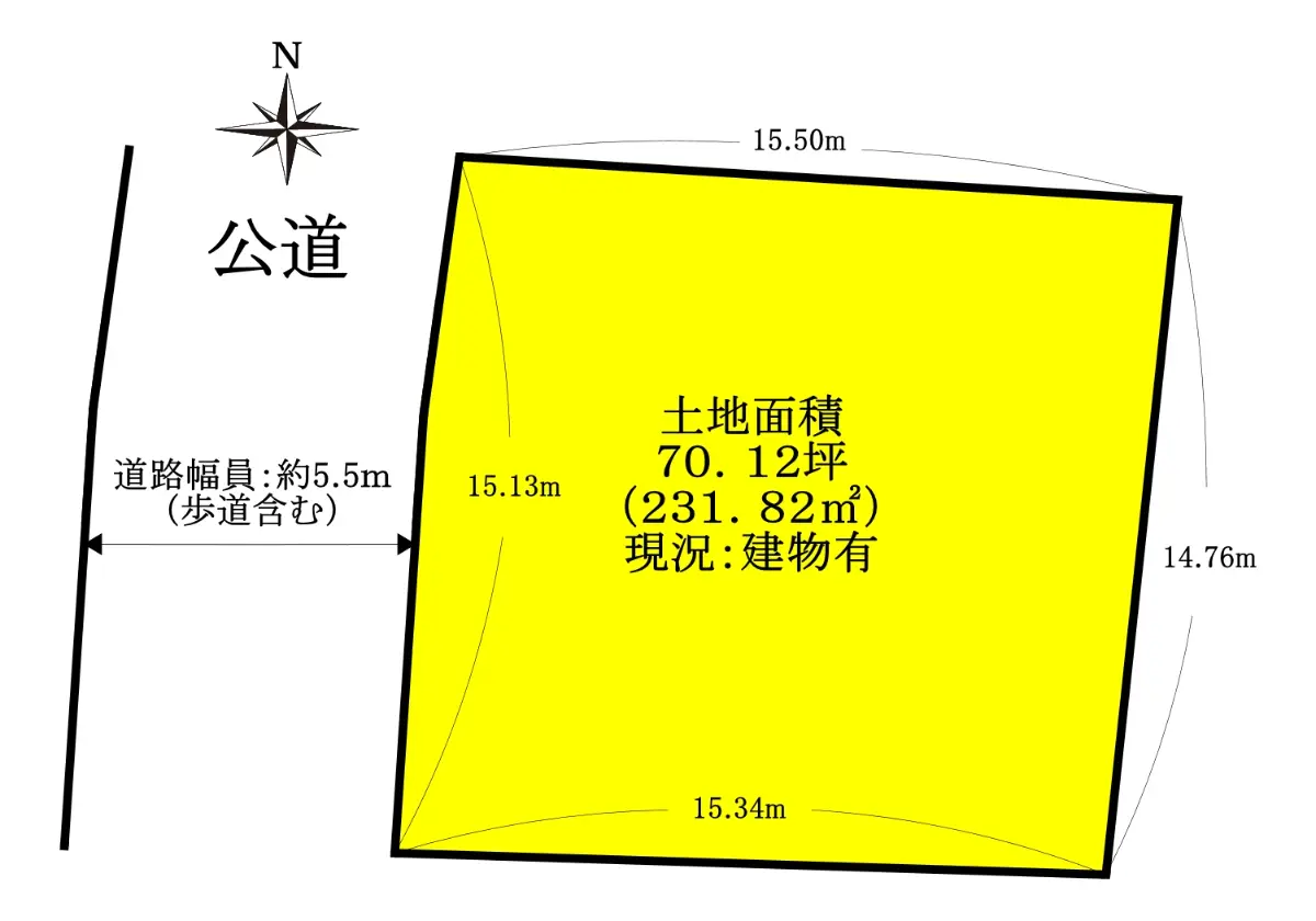 | 接道状況 | 一方道路・西5.5m(公道)接面15.1m |