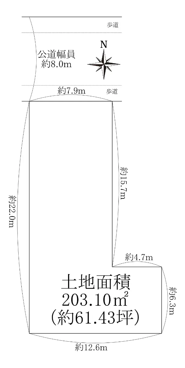 | 土地面積 | 203.10m2(約61.43坪)※公簿 |