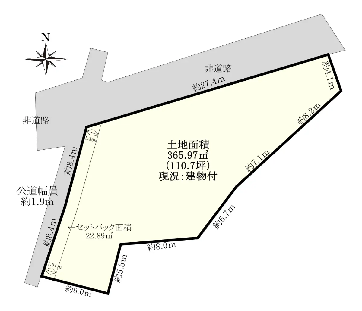 | 土地面積 | 365.97m2(約110.70坪)※公簿/セットバック:22.89m2含む |