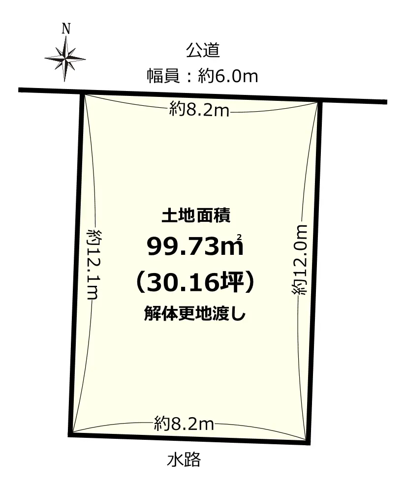 | 接道状況 | 一方道路・北6m(公道)接面8.2m |