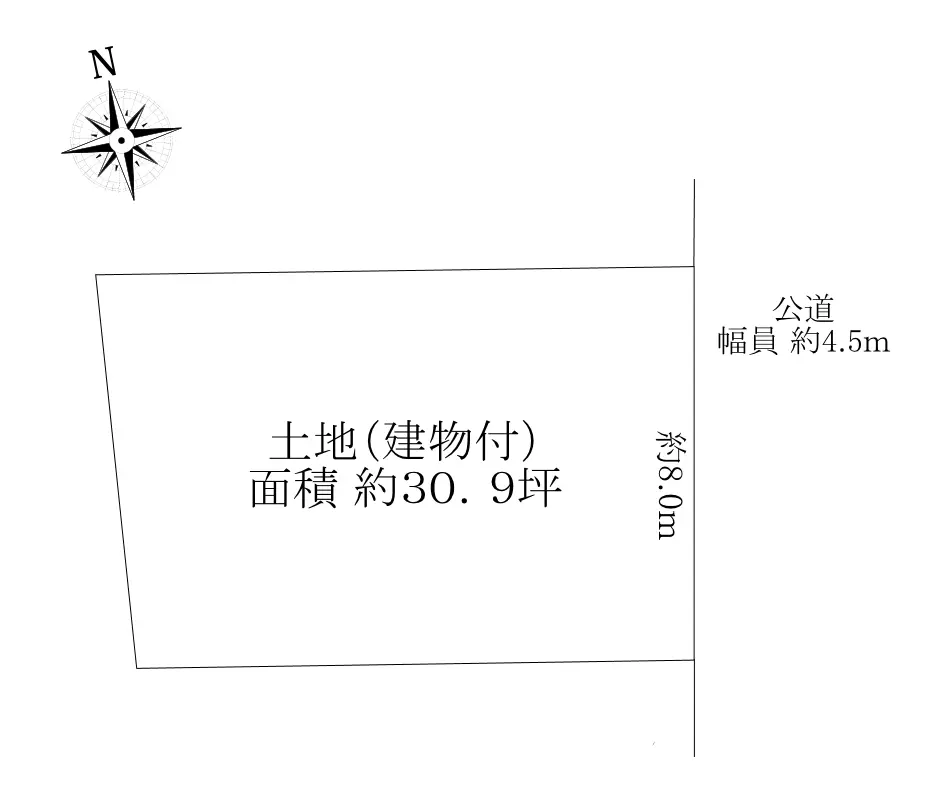 | 接道状況 | 一方道路・東4.5m(公道)接面8m |
