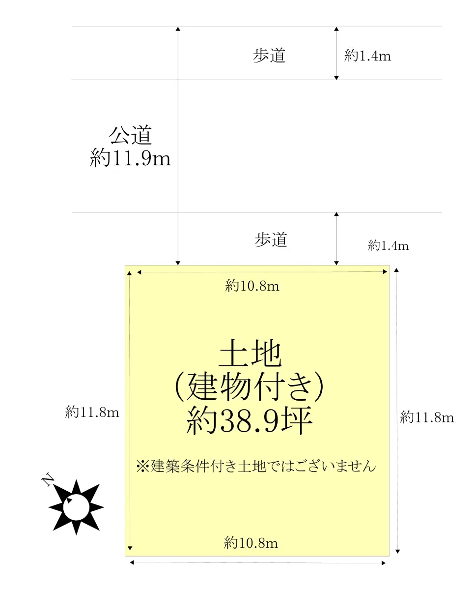 | 接道状況 | 一方道路・北東11.9m(公道)接面10.8m |
