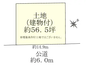 | 接道状況 | 一方道路・南東6m(公道)接面14.9m |