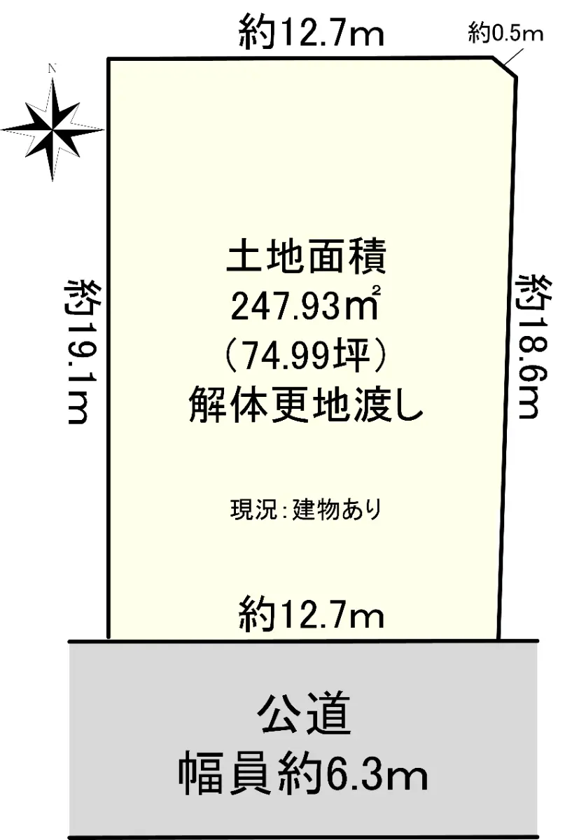 | 接道状況 | 一方道路・南6.3m(公道)接面12.7m |