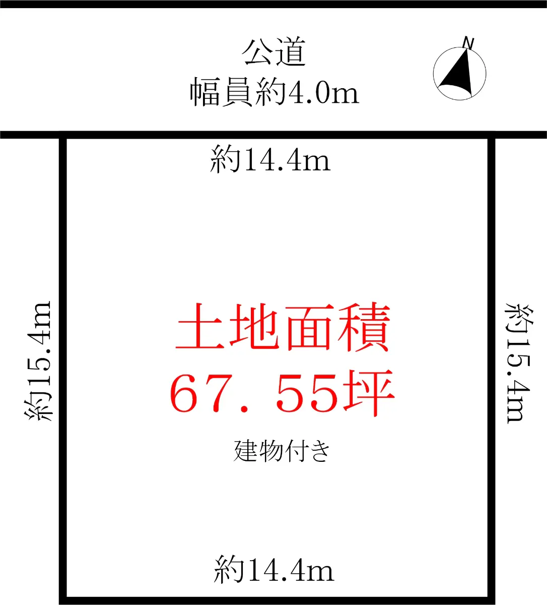 | 接道状況 | 一方道路・北4m(公道)接面14.4m |