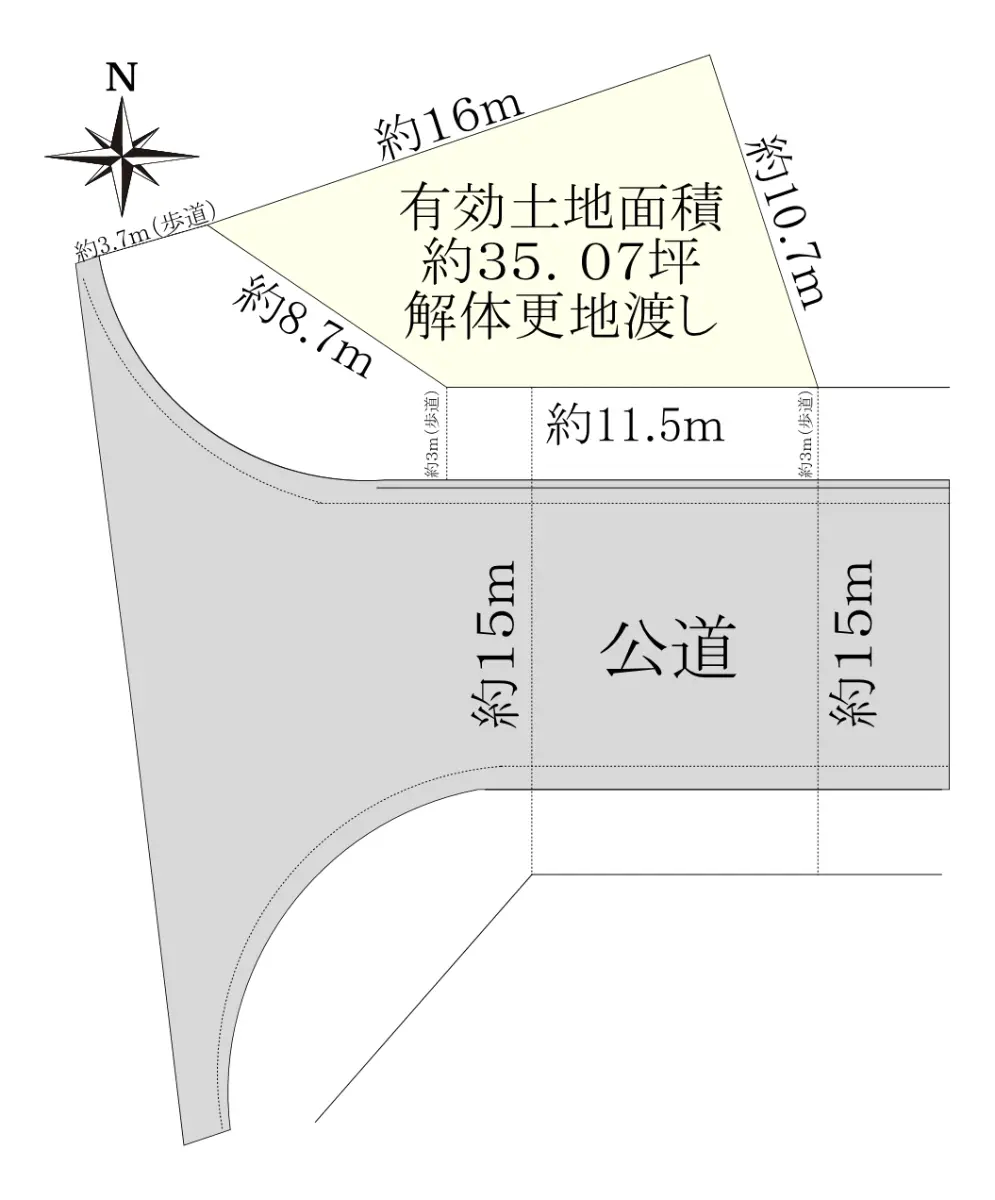| 接道状況 | 一方道路・南15m(公道)接面11.5m |