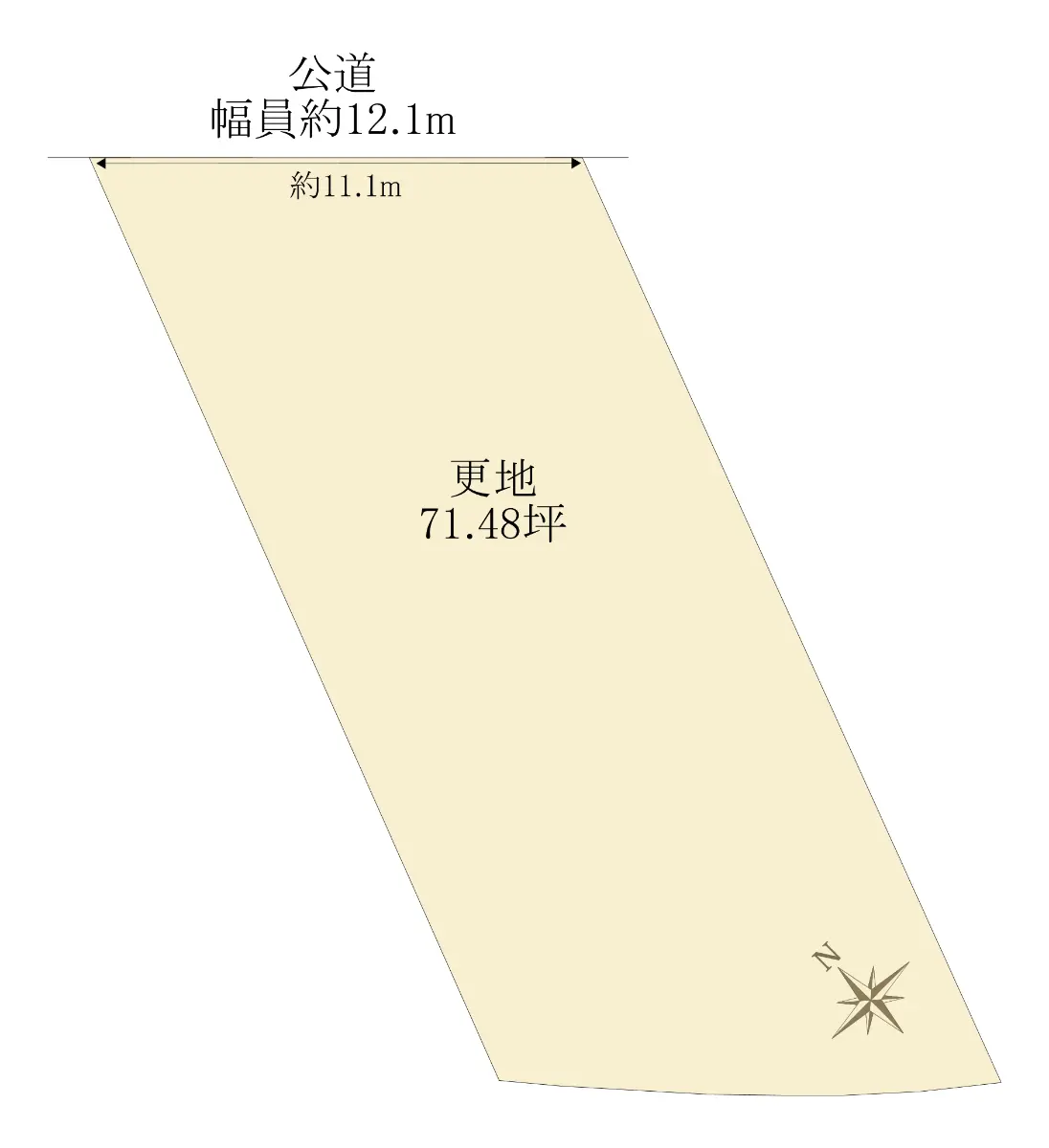 | 接道状況 | 一方道路・北東12.1m(公道)接面11.1m |