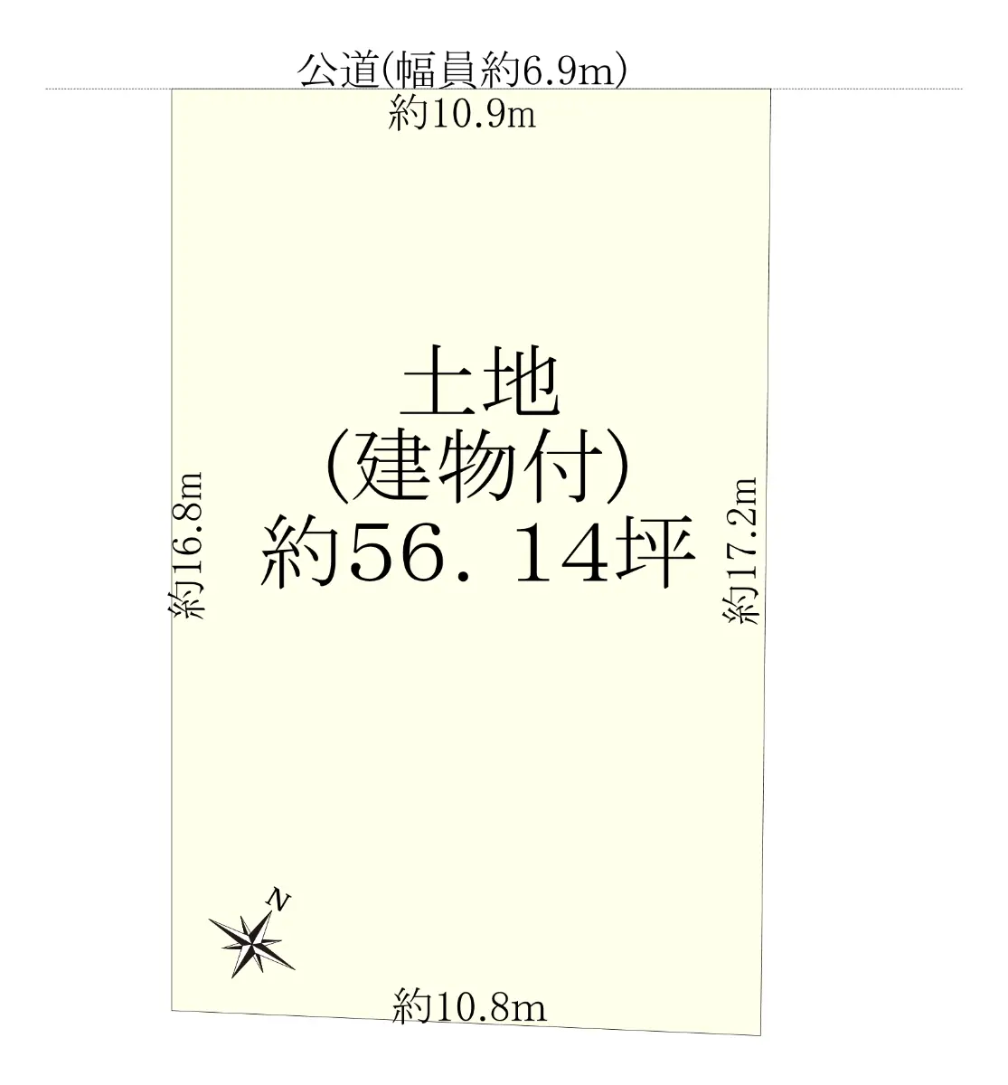 | 接道状況 | 一方道路・北西6.9m(公道)接面10.9m |