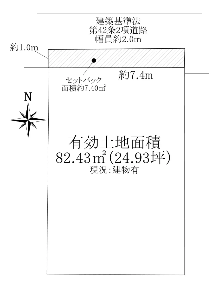 | 接道状況 | 一方道路・北2m(公道)接面7.4m |