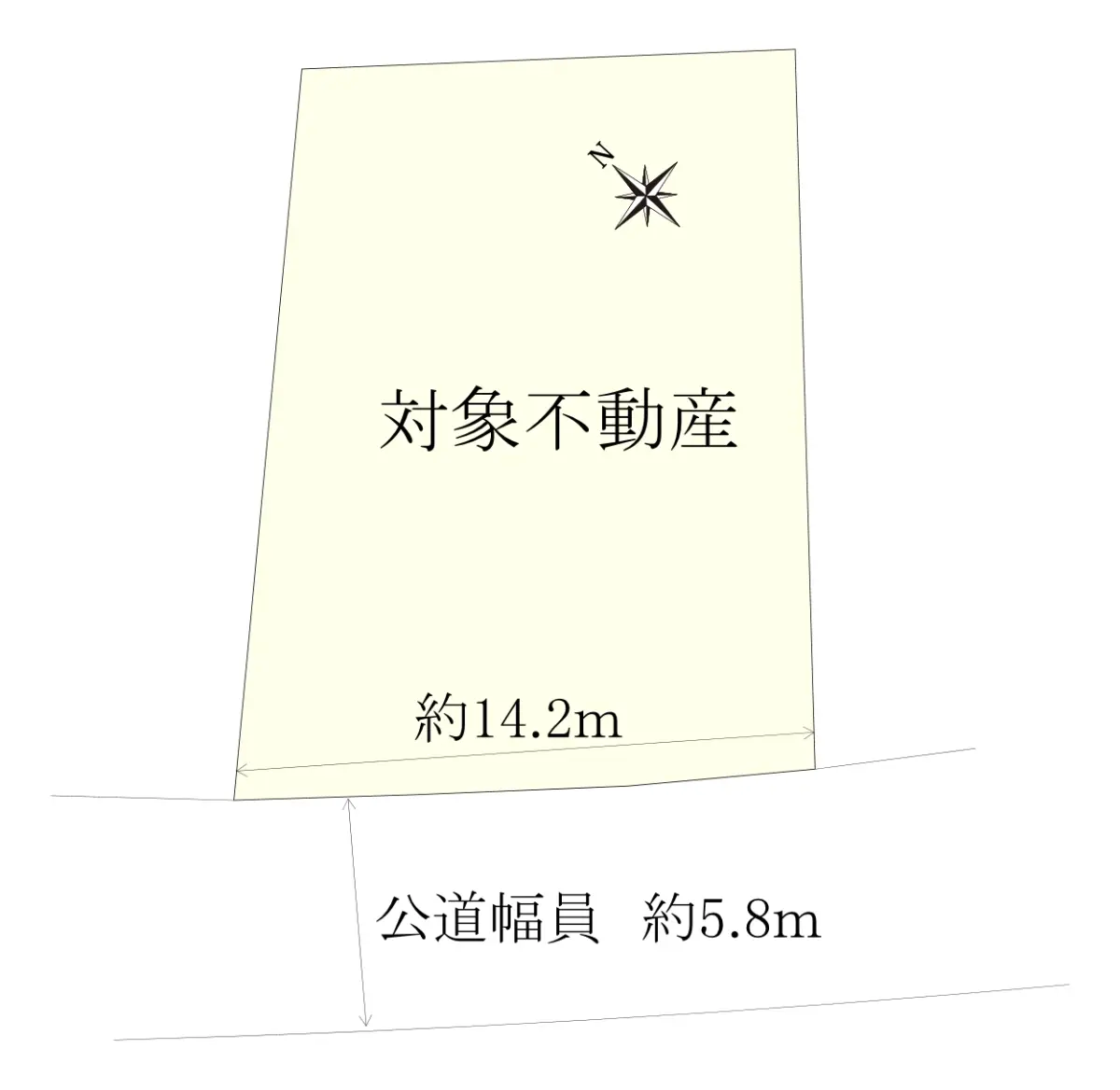 | 接道状況 | 一方道路・南西5.8m(公道)接面14.2m |