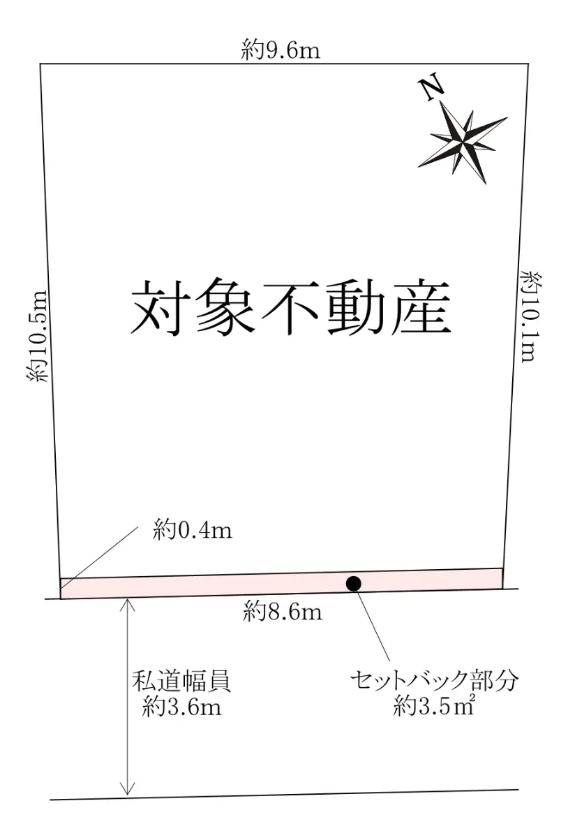 | 接道状況 | 一方道路・南西3.6m(私道)接面8.6m |