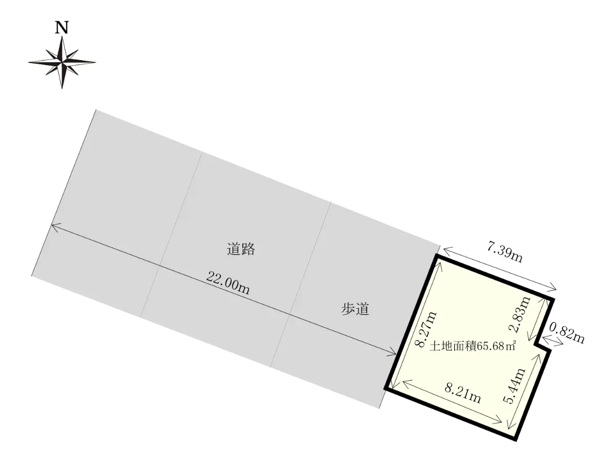 | 接道状況 | 一方道路・北西22m(公道)接面8.2m |