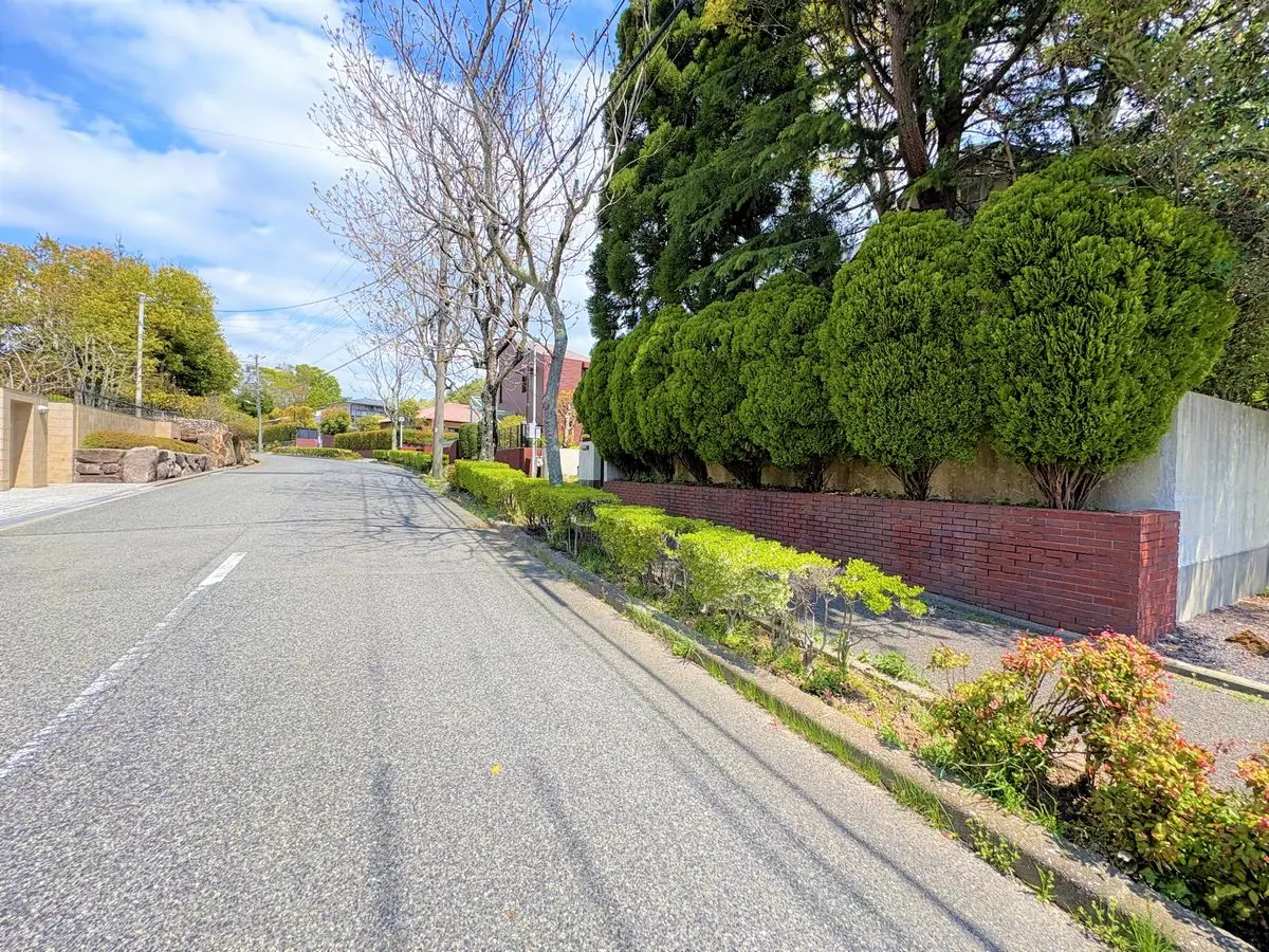 こちらは六甲山系の緑豊かな住環境に佇む宅地です。土地面積893.23u、間口約18.2mにつき建築プランの立てやすい土地となります。