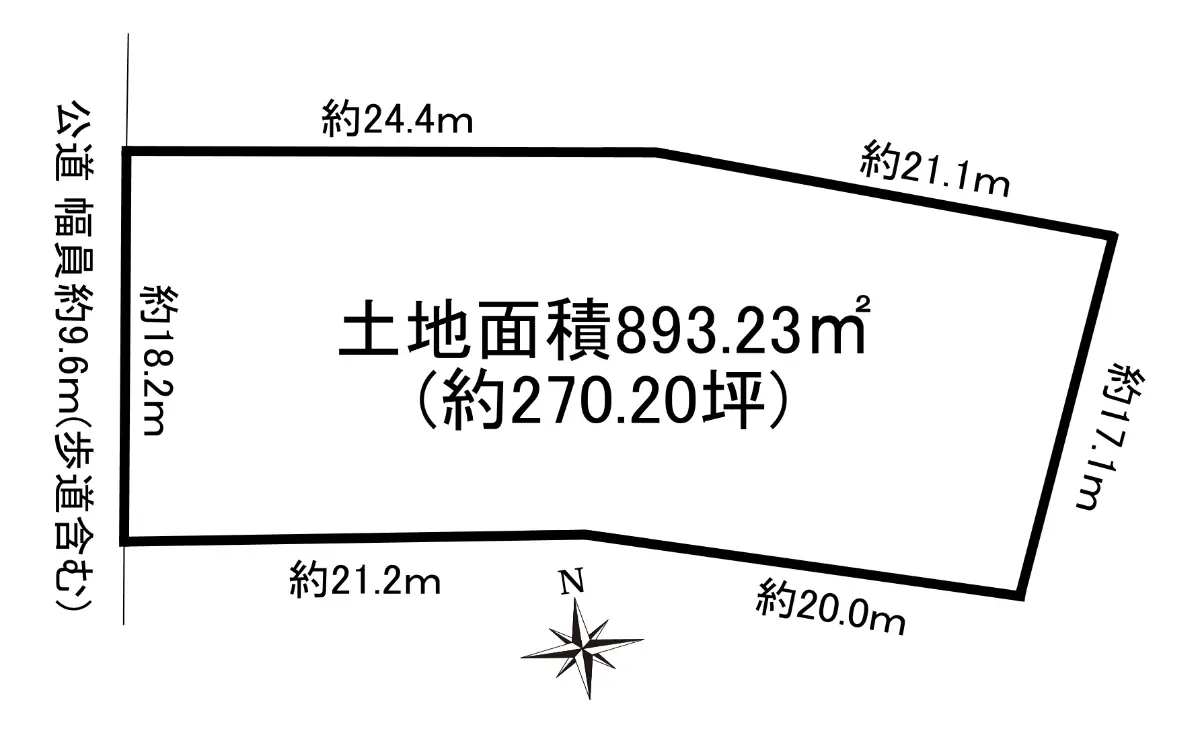 土地面積893.23m2(約270.20坪)※公簿・建ぺい率20%・容積率40%