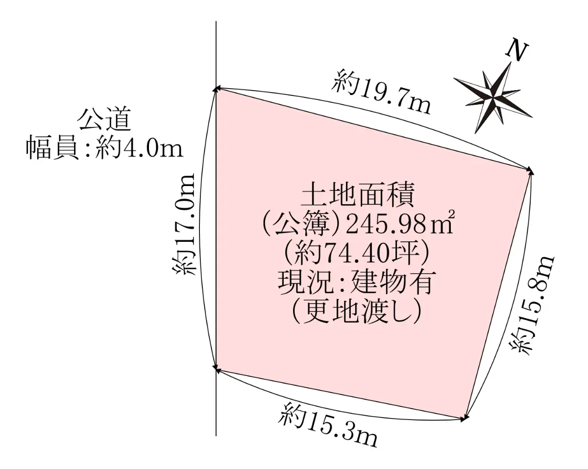 | 土地面積 | 245.98m2(約74.40坪)※公簿 |