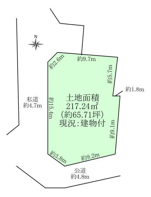 | 接道状況 | 南4.8m(公道)接面13m/西4.7m(私道)接面15.4m |