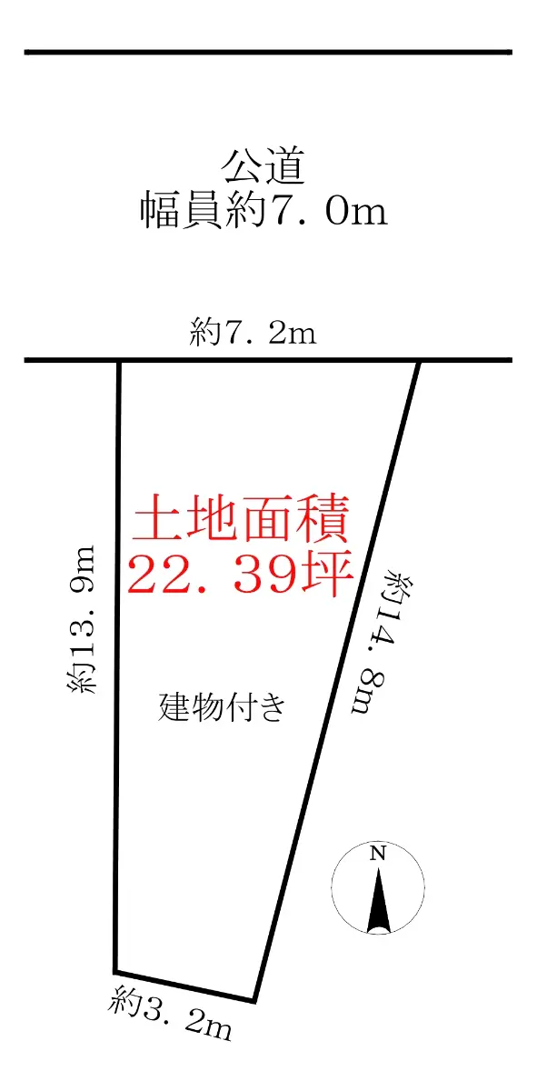 | 土地面積 | 74.04m2(約22.39坪)※公簿 |
