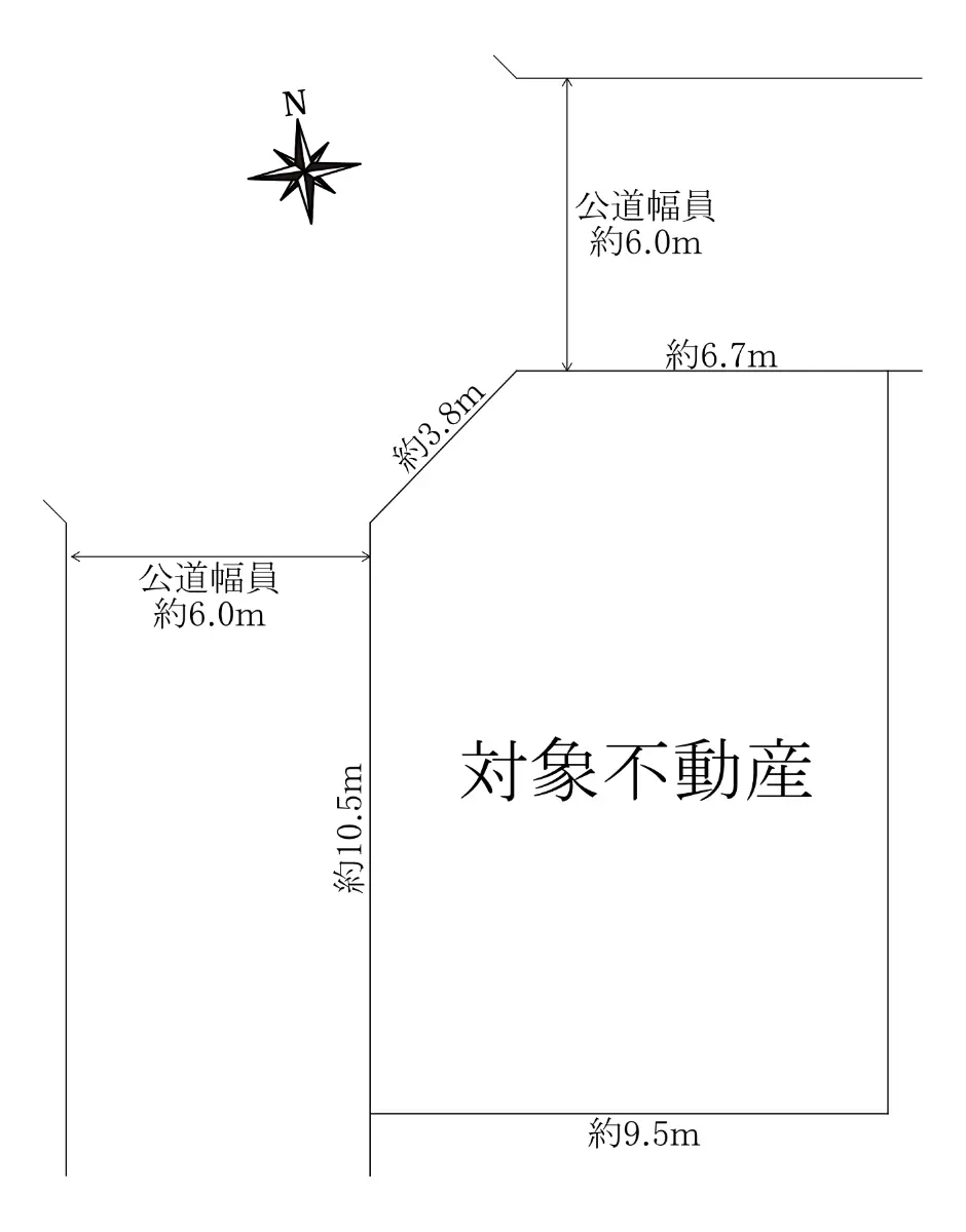 | 接道状況 | 角地・北西6m(公道)接面10.5m/北東6m(公道)接面6.7m |