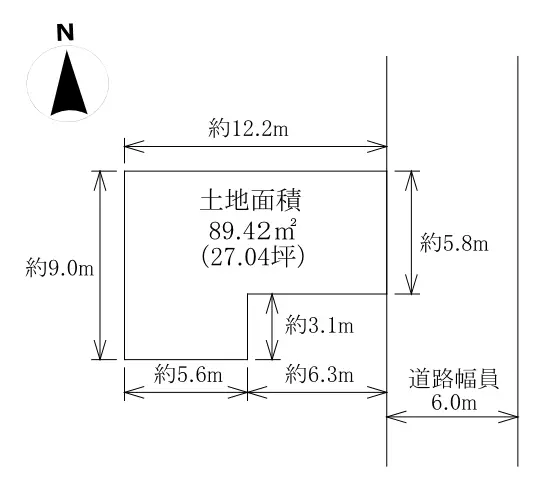 | 土地面積 | 89.42m2(約27.04坪)※公簿 |