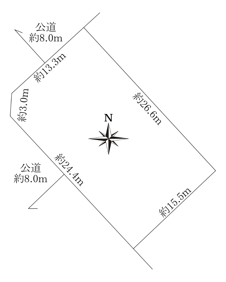 | 接道状況 | 角地・北西8m(公道)接面13.3m/南西8m(公道)接面24.4m |