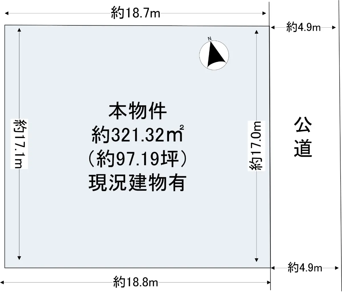 | 接道状況 | 一方道路・南東4.9m(公道)接面17m |