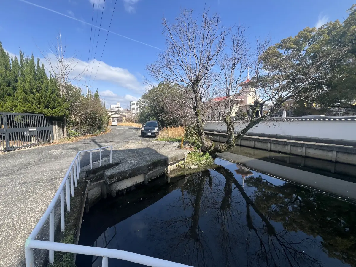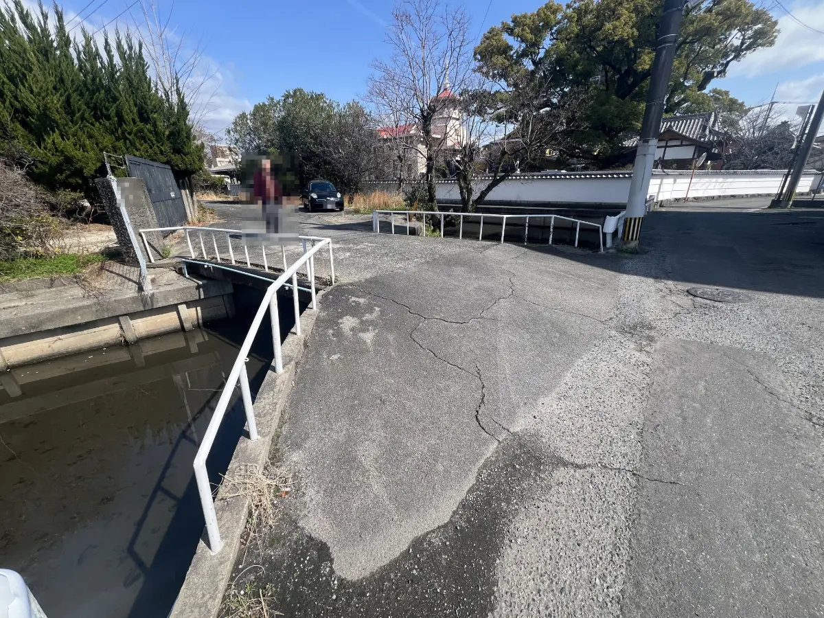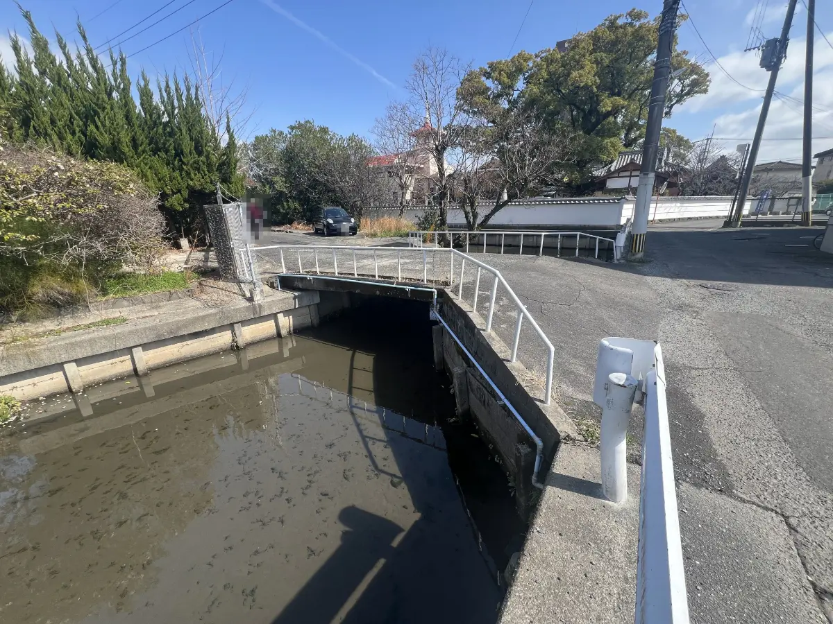 ※再建築不可。ただし、水路の占用許可を得、かつ、特定行政庁の許可を得ることができれば再建築は可能です