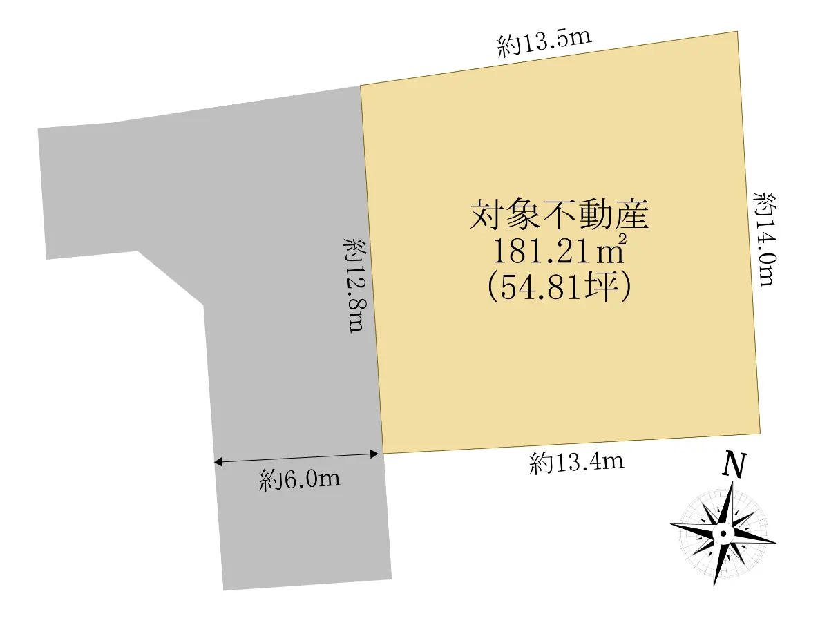 | 接道状況 | 一方道路・西6m(公道)接面12.8m |
