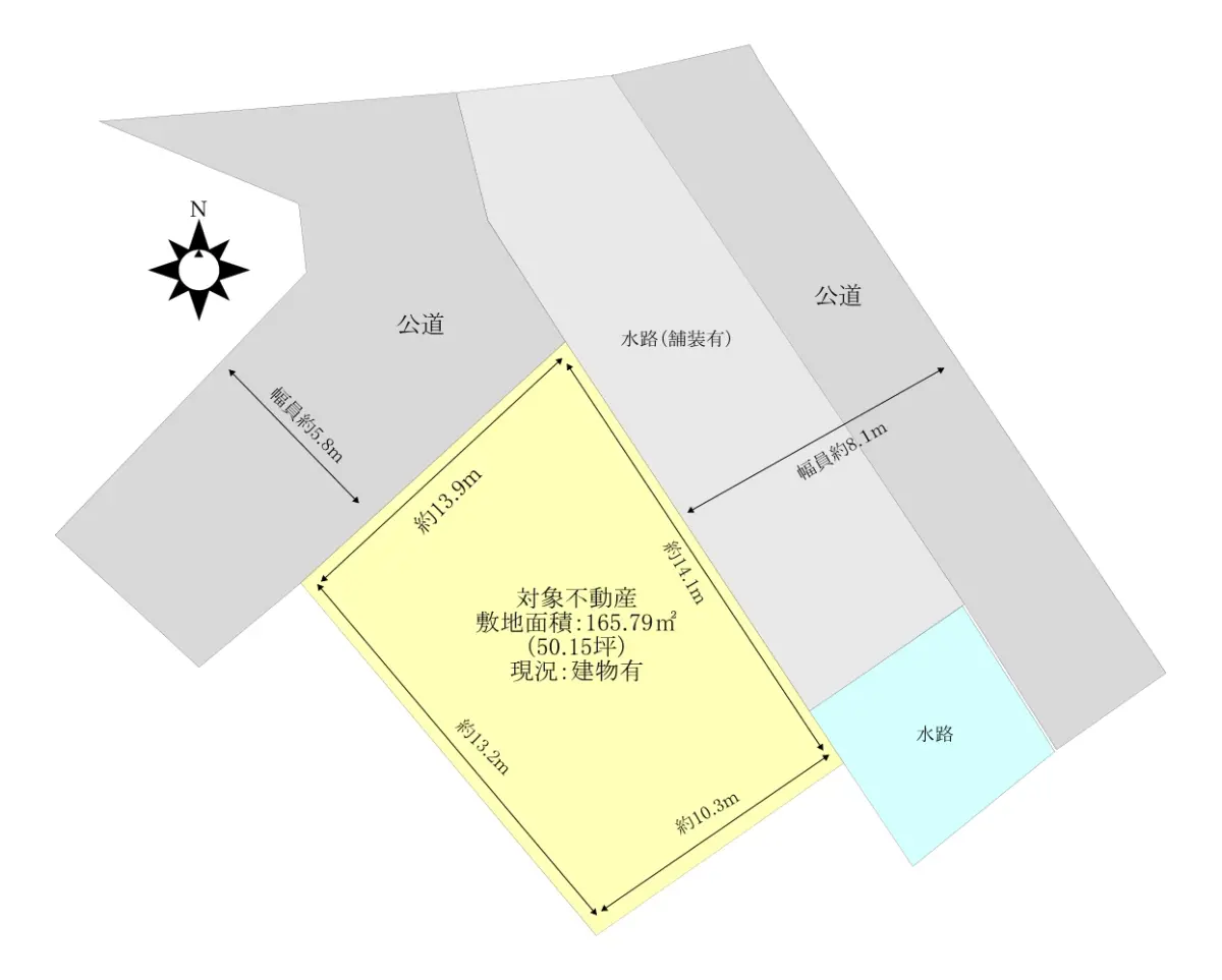 | 接道状況 | 一方道路・北西5.8m(公道)接面13.9m |