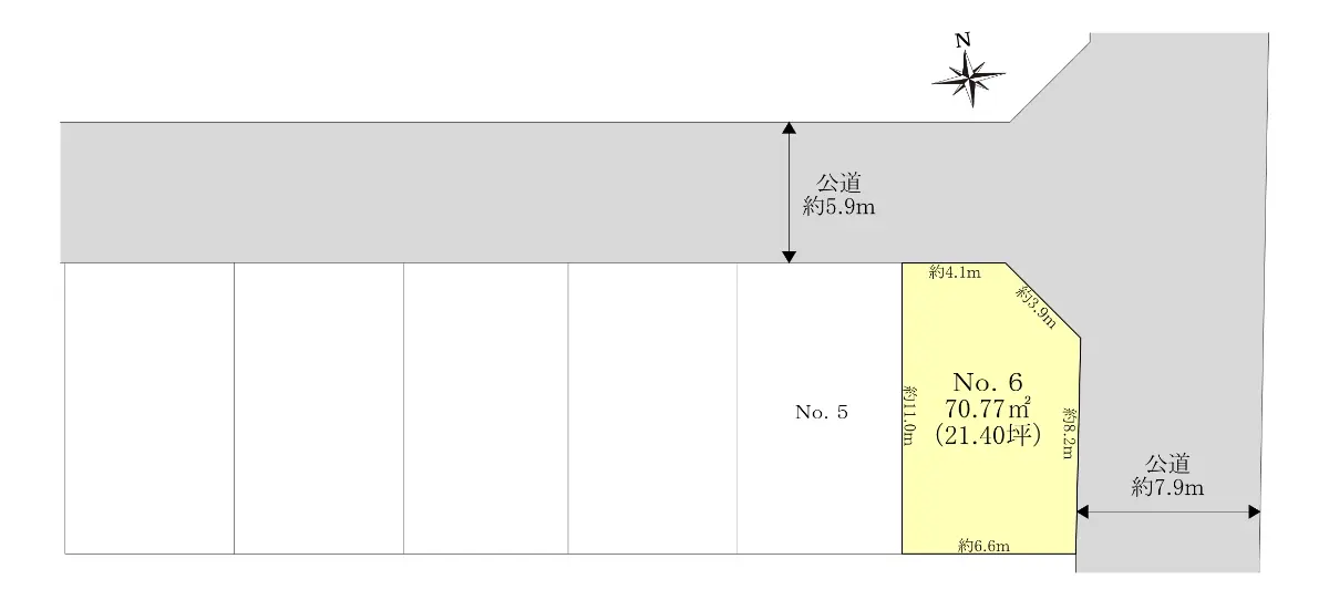 | 接道状況 | 二方道路・東7.9m(公道)接面8.2m/北5.9m(公道)接面4.1m |